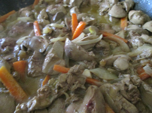 When vegetables are soft and crunchy a bit, add the entire chicken liver and saute about 20-30 minutes.